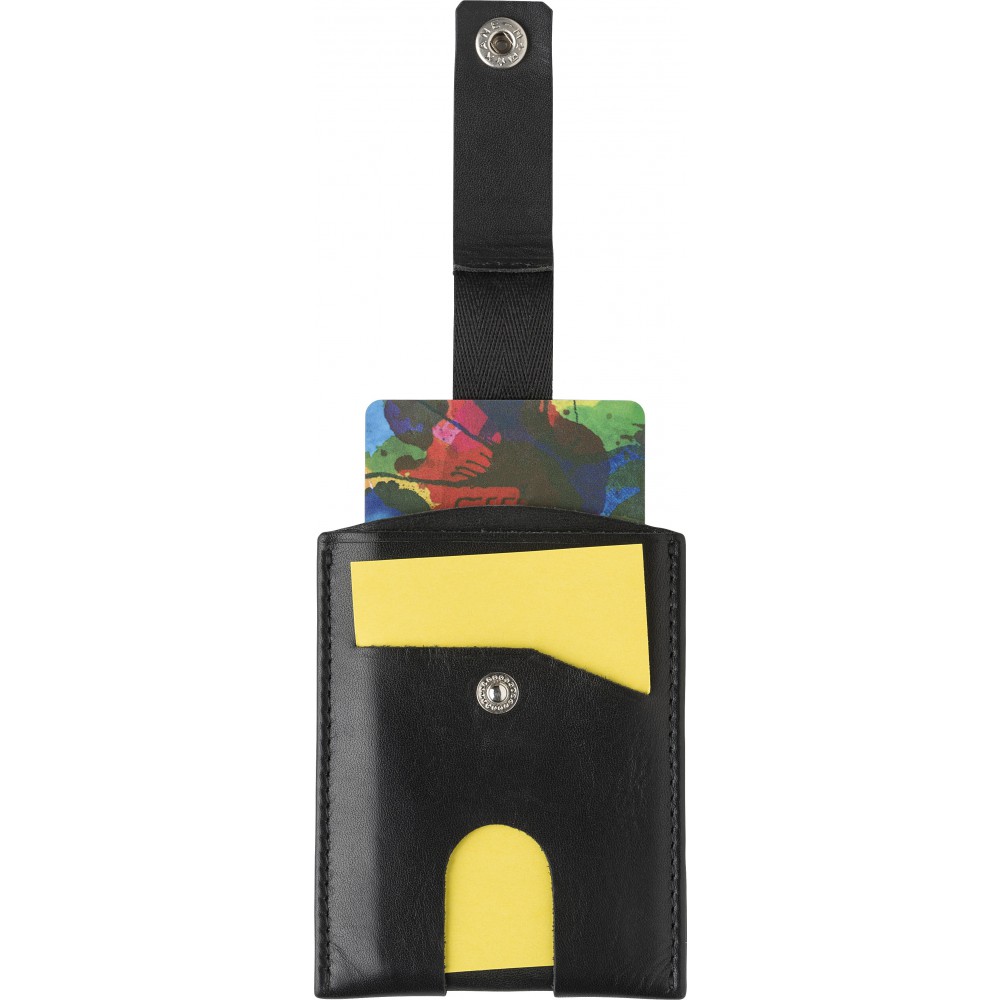 Hasított bőr kártyatartó RFID védelemmel az adatlopás ellen, kipattintható tartóval. Emblémázás: Tamponnyomás