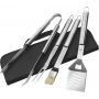 BBQ készlet nylon cipzáros táskában. Tartalma: kefe, húsfogó, villa, lapát. Emblémázás: Gravírozás, Szitanyomás