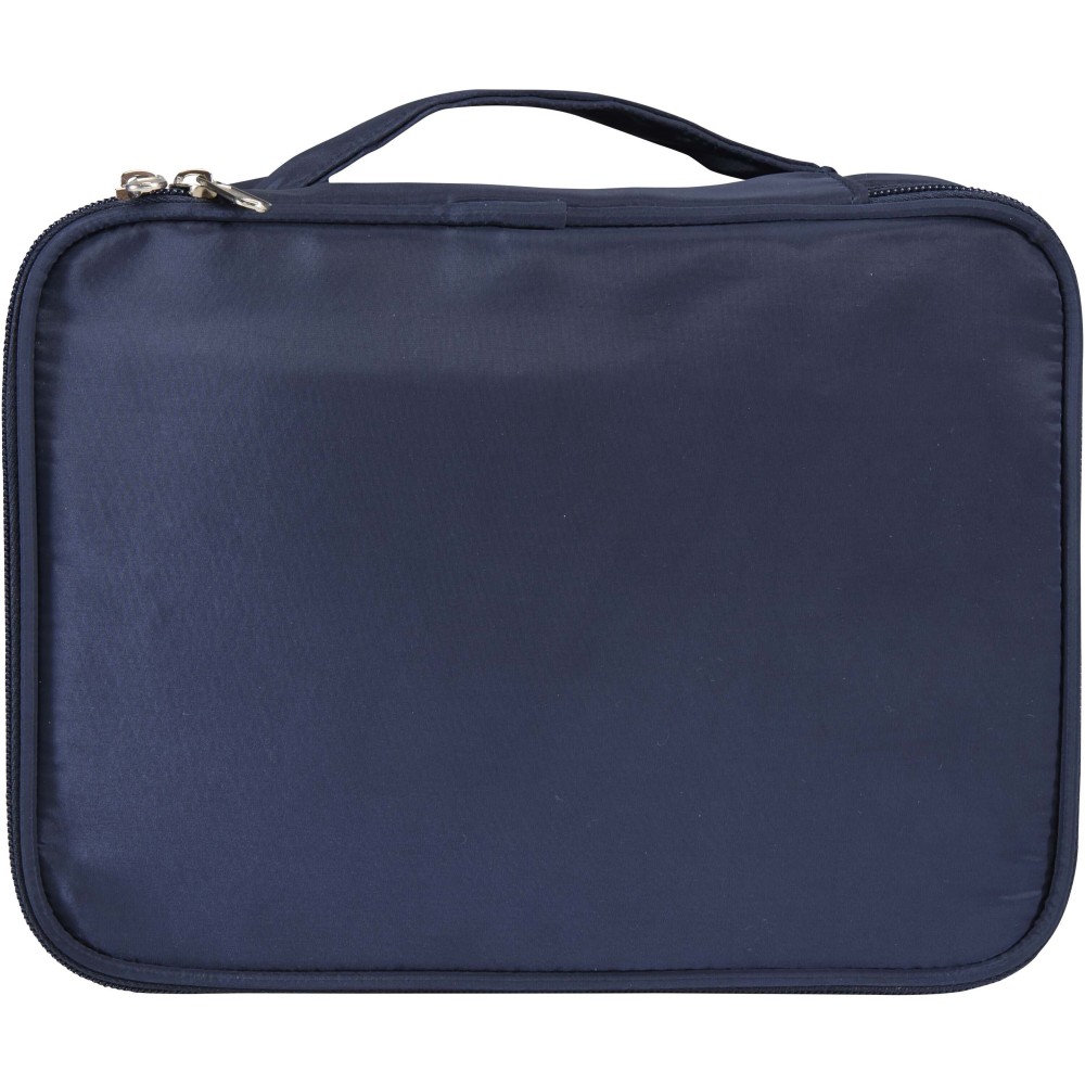 A Muse sminkrendező gondosan, tisztán és kompakt módon tárolja az ecseteket, púdereket, bőrápolókat és egyéb szépségápolási kellékeket. A GRS-tanúsítvánnyal rendelkező újrahasznosított poliészterből készült szervező ötvözi a praktikusságot a fenntarthatóbb anyagválasztással. Emblémázás: Szitanyomás