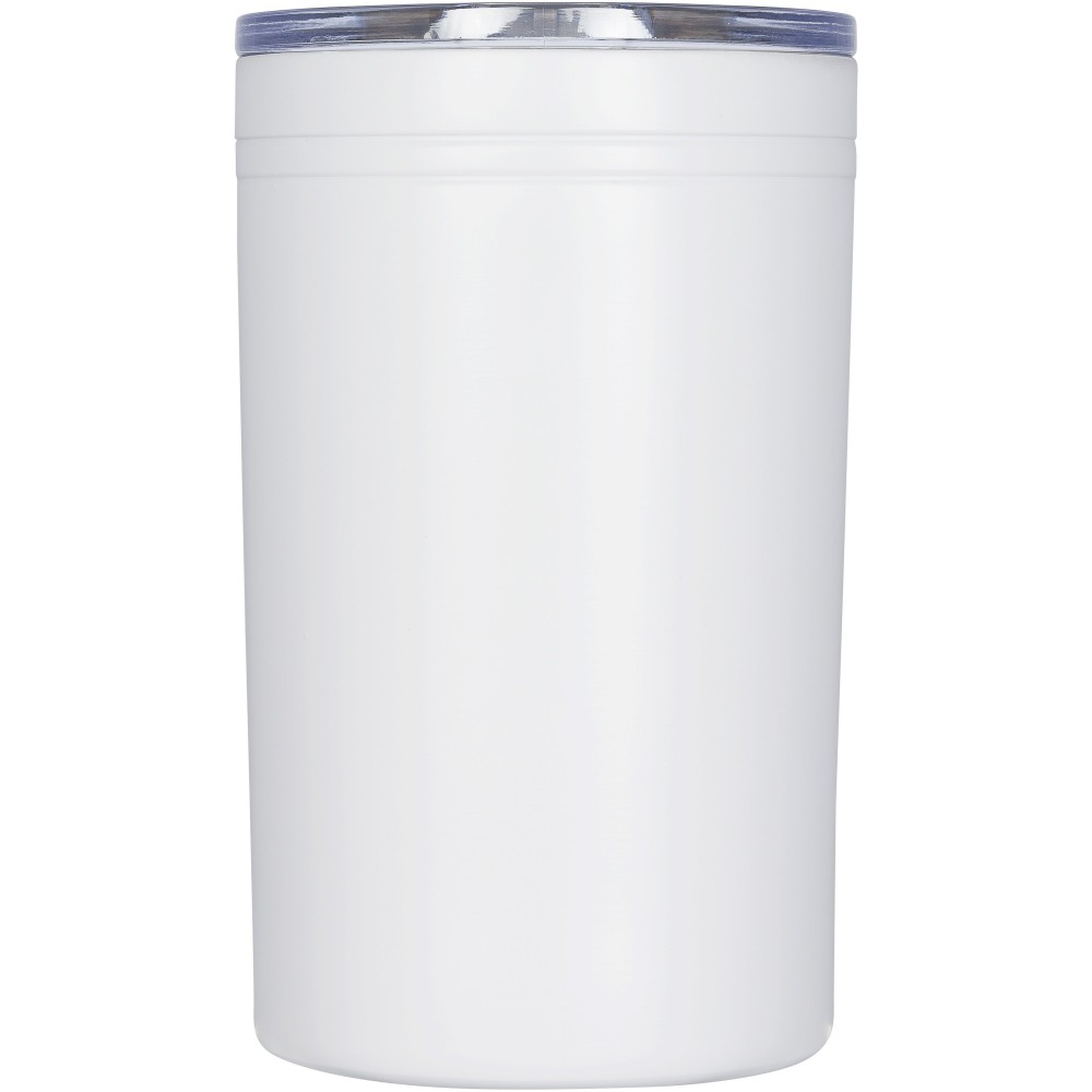 Duplafalas, vákuumos kialakítás. Nem szivárgásmentes. Szénsavas italokkal nem használható. Mosogatógépben nem mosható és mikrohullámú sütőben történő melegítésre nem alkalmas. Átlátszó, rápattintható kupak, elcsúsztatható záródással. Űrtartalom: 330 ml. Emblémázás: Gravírozás, Körszita, Tamponnyomás