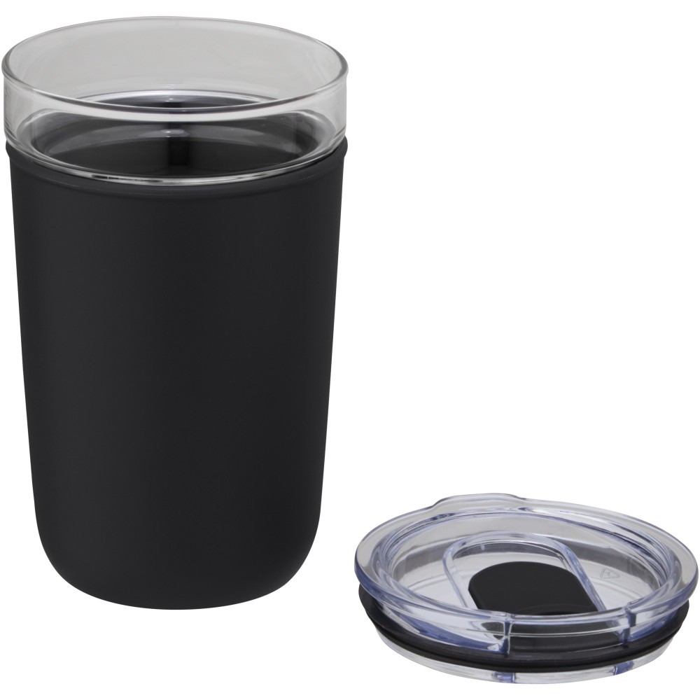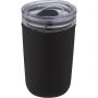 Újrahasznosított műanyag tokkal védett üvegpohár. A pohár 100%-ban tartós boroszilikát üvegből készült, amely megőrzi az ital frissességét, és nem tartalmaz semmilyen káros vegyszert. BPA-mentes, a német élelmiszerbiztonsági törvény (LFGB) szerint tesztelt és jóváhagyott. Ftaláttartalomra tesztelve és jóváhagyva a REACH előírásai szerint. A pohár a legtöbb kávéfőző alá illeszkedik. Nem szivárgásmentes. Szénsavas italokkal nem használható. Mosogatógépben mosható, de mikrohullámú sütőben történő melegítésre nem alkalmas. Űrtartalom: 420 ml. Újrahasznosított karton díszdobozban. Emblémázás: Bögredekor, Tamponnyomás