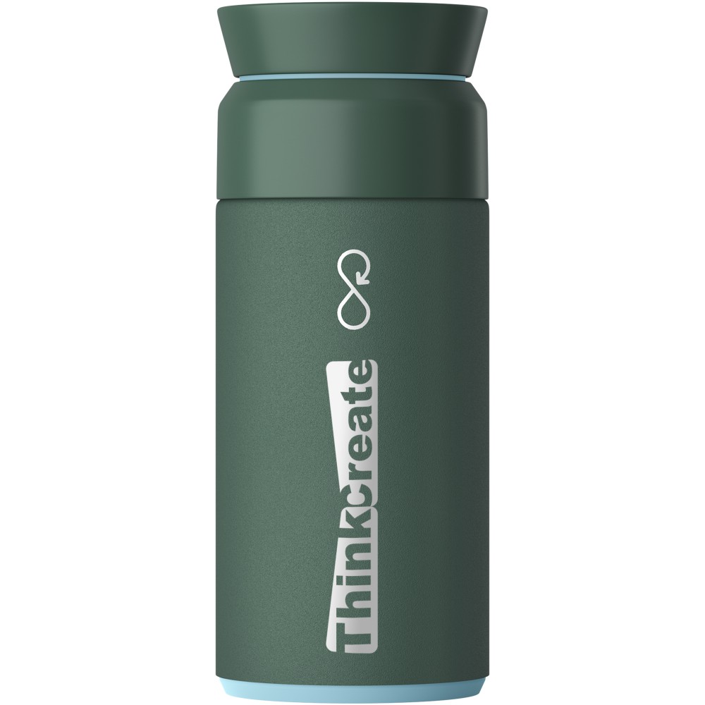 A 350 ml-es Ocean Bottle nagyszerű választás forró italok számára utazás során. A palack újrahasznosított rozsdamentes acélt és újrahasznosított óceáni műanyagot tartalmaz. Egy palack gyártásához 1000 műanyag palackot gyűjtöttek össze, így javítva a tengerparti közösségek megélhetését. NFC Smart Chip-pel rendelkezik, hogy több műanyag gyűjtését támogassa minden utántöltéskor. Az innovatív 360 fokos fedél lehetővé teszi az aromák cirkulálását, az újrahasznosított rozsdamentes acél kettős hőszigetelése pedig akár hat órán keresztül is melegen tartja az italokat. Emblémázás: Gravírozás, Tamponnyomás