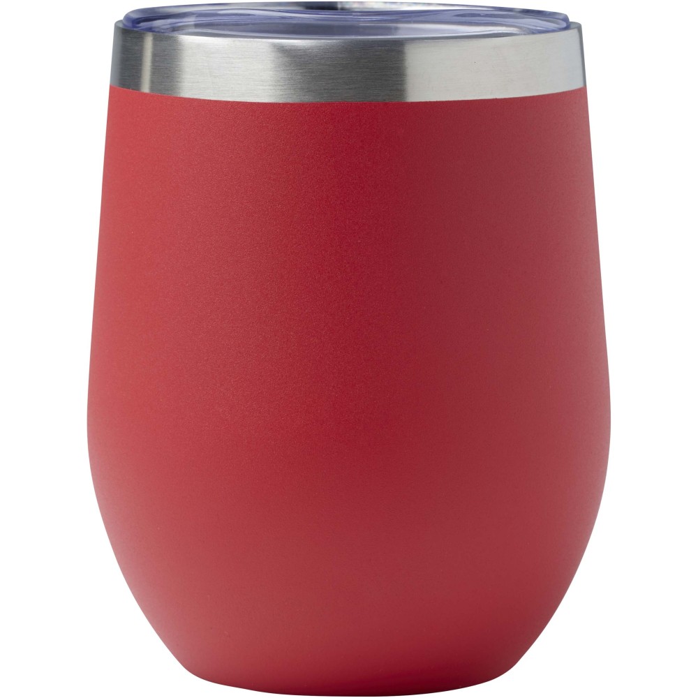 A Corzo RCS tanúsítvánnyal rendelkező rozsdamentes acélból készült, és duplafalú vákuum konstrukcióval rendelkezik réz szigeteléssel, amely 6 órán keresztül melegen, vagy 24 órán keresztül hidegen tartja az italokat. A konstrukció megakadályozza a kondenzációt a csésze külsején. Könnyen használható, nyomófedeles kialakítás. Az alsó részén porfestett bevonat található. Széles nyílás a kényelmes töltéshez és öntéshez. Űrtartalom: 350 ml. Újrahasznosított kartondobozban szállítjuk. Emblémázás: Gravírozás, Tamponnyomás