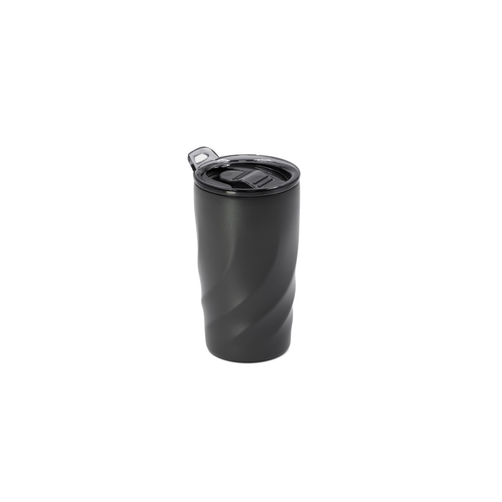 A Vortex Calix Ceramica utazóbögre újrahasznosított rozsdamentes acélból készült, kerámia bevonattal, melyben ötvöződik az öko-luxus és a funkcionalitás. Kerámia belseje a legtisztább ízeket biztosítja a kávé és a tea számára, miközben szagtalan, tartós és könnyen tisztítható. A 400 ml-es pohár egyszerre kínál minőséget és környezettudatosságot. A csavarozható, szivárgásmentes fedél habzó vagy buborékos italok számára is alkalmas, és a további kényelem érdekében vállpánttal is kiegészíthető. Tökéletes társ a környezettudatos egyének számára. Emblémázás: Gravírozás