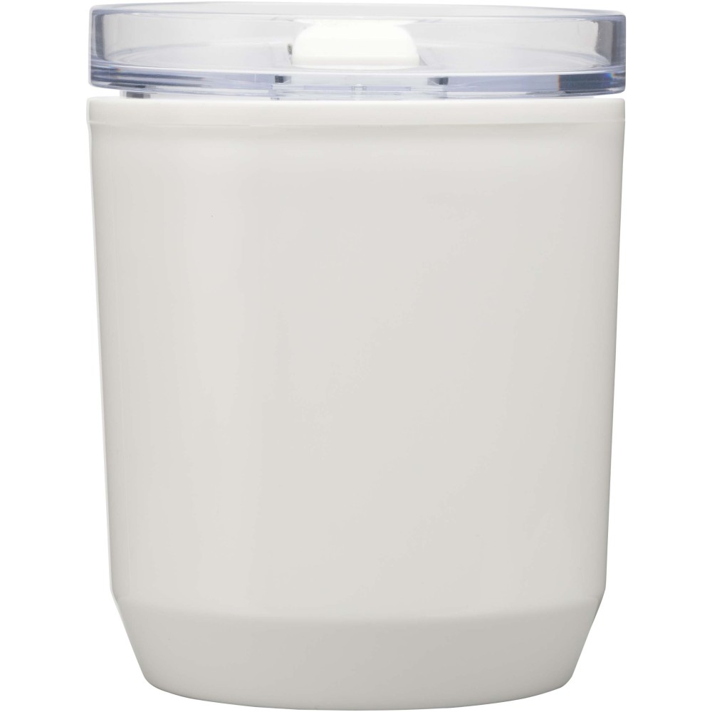Egyszerű kialakítású termoszbögre, amely a legtöbb kávégéppel és autós pohártartóval kompatibilis. Dupla falú szerkezettel rendelkezik, újrahasznosított PP műanyag külsővel és PP műanyag belsővel. A csúsztatható fedél AS és PP műanyagból készült. Űrtartalma: 180 ml. Emblémázás: Körszita, Tamponnyomás