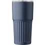 Újrahasznosított rozsdamentes acél útibögre, 450 ml. A belső 304-es, a külső 201-es rozsdamentes acélból készült, bordás markolattal, műanyag, csúszózáras fedéllel. Gravírozott újrahasznosított logó található a bögrén. Csomagolása barna papírdoboz. Emblémázás: Körszita, Tamponnyomás
