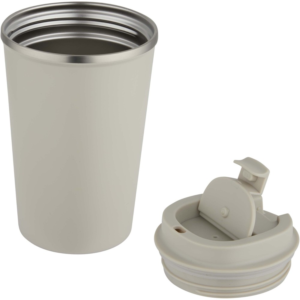 Ez a 350 ml űrtartalmú, duplafalú, vákuumszigetelt rozsdamentes acél kávés termoszpohár úgy lett kialakítva, hogy az italokat hosszú ideig a megfelelő hőmérsékleten tartsa. A csavaros tető könnyű nyitást és zárást tesz lehetővé, miközben kényelmessé teszi az italok fogyasztását utazás közben is, a matt külső bevonat pedig modern és elegáns megjelenést kölcsönöz a terméknek. Emblémázás: Gravírozás