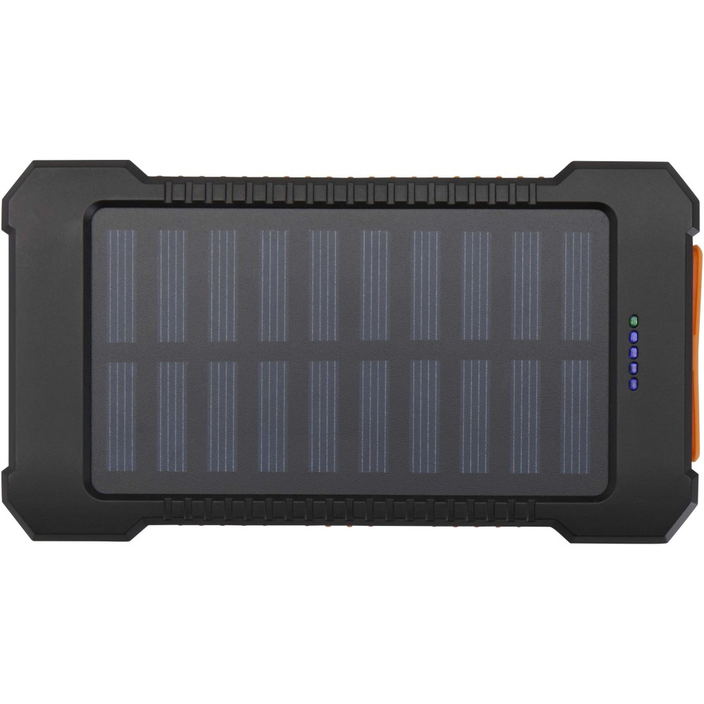 Az Altair 5000 mAh-s napelemes powerbank újrahasznosított műanyagból készül, tartósságra és kényelmes használatra tervezve. Két USB-A kimeneti porttal és egy Type-C bemenet/kimenettel rendelkezik, így rugalmas töltési lehetőségeket kínál. Masszív külső borítása és levehető csíptetője megkönnyíti a rögzítést, beépített zseblámpája pedig praktikus kiegészítő. A csatlakozók szilikon fedél mögött biztonságosan elhelyezve találhatók, a napelemes töltés funkció és az állapotjelző LED pedig ideálissá teszi szabadtéri kalandokhoz és utazásokhoz. Emblémázás: Tamponnyomás
