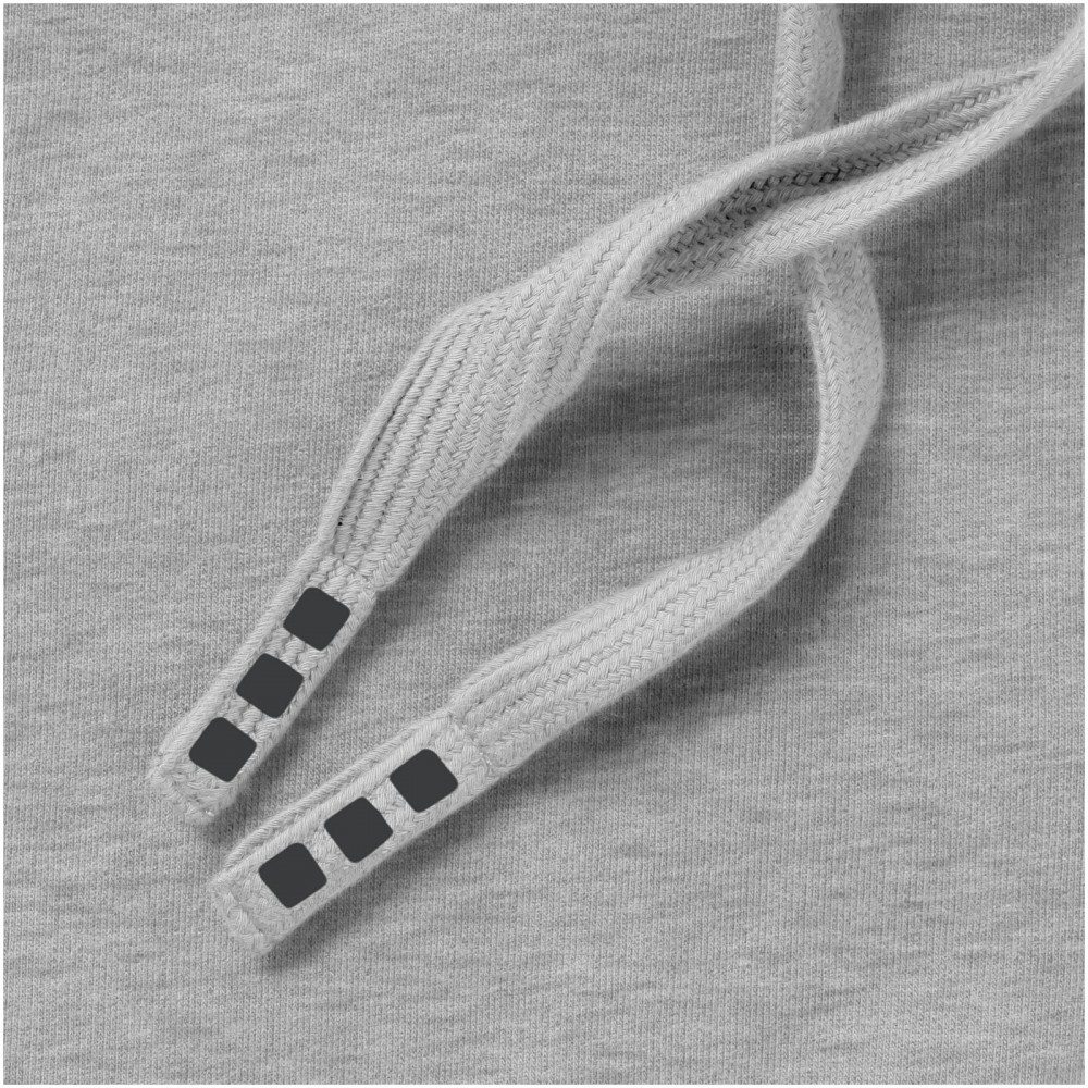 Normál szabásvonal. 2x2-es bordás oldalpanel, ujj- és derékpasszé. Kenguruzseb. Kapucniállító húzózsinór (kivéve gyerek modell). Bélelt kapucni. Saját anyagából készült félholdas betét a nyaknál. Szatén szegély a nyakvonalban. Kontrasztos színű halszálkamintás szalag a kapucniban. Hátul tónusos logónyomat. Antikolt fém fűzőlyuk-gyűrű gravírozott logóval. 80% pamut és 20% poliészter, kötött, belül bolyhozott. 300 g/m2. Emblémázás: Hímzés, Szitanyomás