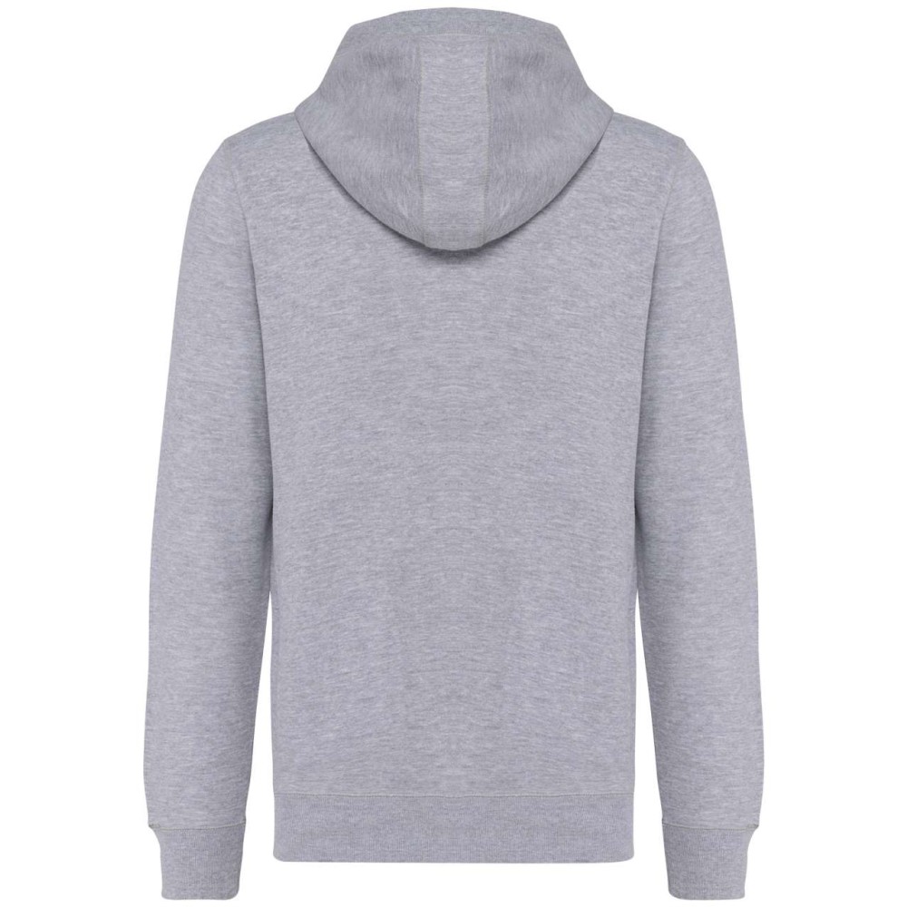 80% bio pamut / 20% újrahasznosított poliészter. Oxford szürke 75% bio pamut / 25% újrahasznosított poliészter. Francia frottír LST (Low Shrinkage Terry). Szövet: enzimes mosás. Karcsúsított szabás. 2 csíkos elülső zseb. Fém cipzár. Bordázott kézelő, bordázott szegély és bélelt kapucni. Fémvégű húzózsinórral. Félhold alakú kivitel a nyakkivágásnál, hogy megkönnyítse a díszítéshez való hozzáférést belülről. Twill szalaggal erősített nyak. Nincs márkacímke a nyakon, csak méretcímke a dekorációhoz való könnyebb hozzáférés érdekében. OEKO-TEX N CQ1007/7 STANDARD 100 tanúsítvánnyal rendelkezik. IFTH. Emblémázás: Hímzés, Szitanyomás