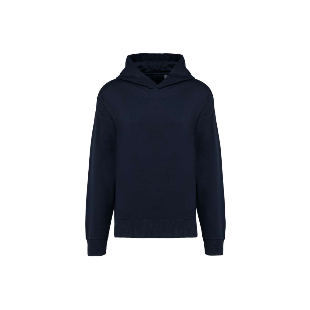 80% cotton / 20% polyester. Oversized fit with dropped shoulders. Brushed fleece. Carded cotton. 1x1 ribbing with a tubular finish on the cuffs and hem. Hidden pocket with invisible zip in the seam on the right side when worn. Cotton hood with double dart. Elastane in the ribbing on the cuffs and at the bottom of the garment to prevent them from going out of shape. Matching twill taped neck. Half-moon finish inside neck. Double overlaid overstitching on cuffs and bottom hem. No brand label on the collar. only a size tag for easy decoration. Emblémázás: Hímzés, Szitanyomás
