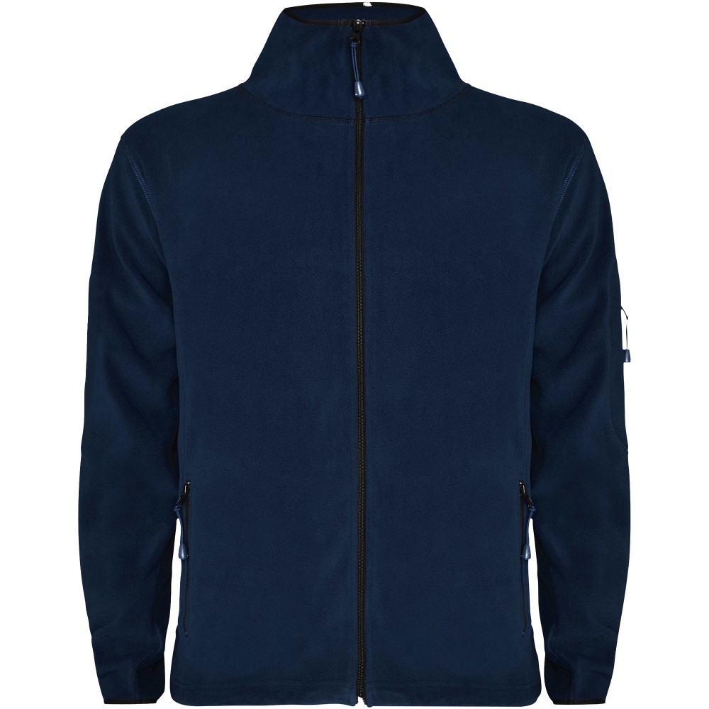 Mikroszálas pulóver mindennapi használatra, magas gallérral, hosszú ujakkal és kontrasztos bordás szegéllyel. Bal ujjon kontrasztos cipzárral ellátott zseb és elöl kontrasztos cipzár. Oldalsó és mellkasi varratok. Könyökvédők azonos anyagból. Emblémázás: Hímzés