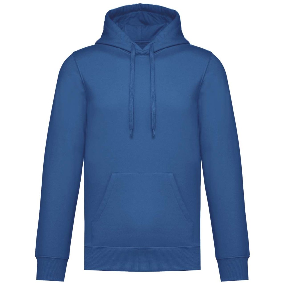 50% gyűrűs fonású pamut / 50% újrahasznosított poliészter, fésült pamut. Egyenes szabású, vágott és varrott. 1x1 bordás kötés a nyakkivágás, a mandzsetta és az alsó szegély jobb megjelenése érdekében. Kenguruzseb. Policotton dzsörzé bélésű kapucni lapos húzózsinórral. Színben illeszkedő dzsörzé szalagos belső a nyakkivágásnál. Csak méretcímke márkajelzés nélkül. Emblémázás: Hímzés, Szitanyomás