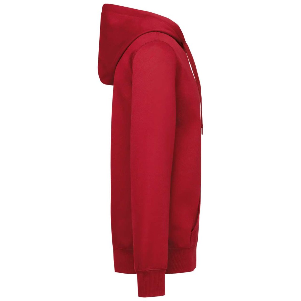50% gyűrűs fonású pamut / 50% újrahasznosított poliészter, fésült pamut. Egyenes szabású, vágott és varrott. 1x1 bordás kötés a nyakkivágás, a mandzsetta és az alsó szegély jobb megjelenése érdekében. Kenguruzseb, nylon cipzár. Policotton dzsörzé bélésű kapucni lapos húzózsinórral. Színben illeszkedő dzsörzé szalagos belső a nyakkivágásnál. Csak méretcímke márkajelzés nélkül. Emblémázás: Hímzés, Szitanyomás