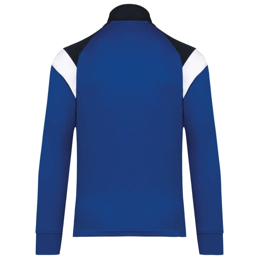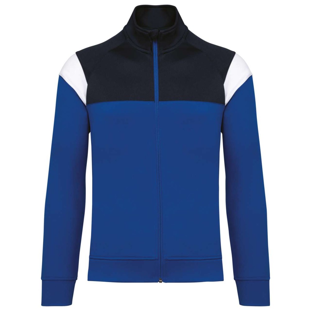 Anyaga: 100% matt poliészter interlock. Egyenes szabás. Elöl fordított cipzáras záródás színazonos nejlonból. Raglán ujjak kontrasztos vállbetétekkel. Kontrasztos mell- és vállkialakítás. Két cipzáras elülső zseb. Texturált anyagbetétek az oldalakon és a hátrészen. Cipzárfedő a felső nyakkivágásnál a nagyobb kényelem érdekében. Könnyen eltávolítható márkajelzés a dekorációhoz. Emblémázás: Hímzés, Szitanyomás