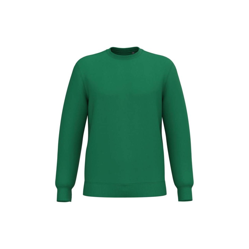 280 g/m2, 50% gyűrött pamut/50% újrahasznosított poliészter. Csiszolt polár anyag, egyenes szabás, környakas fazon. Vágott és varrott, 1x1 bordás, csőszerű összeállítás a nyakvonal, a mandzsetták és az alsó szegély jobb kiviteléért. Tónusban megegyező jersey szalag a nyakvonal belsejében. Nincs márkajelzés a nyakvonalon, csak méretcímke a könnyű dekorálás érdekében. Emblémázás: Hímzés, Szitanyomás