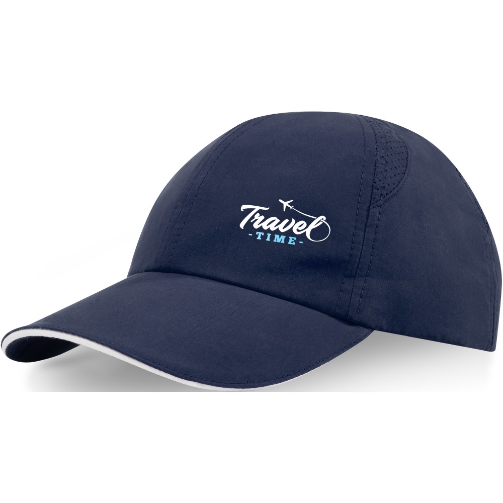 Újrahasznosított poliészterből készült, GRS tanúsítvánnyal rendelkező baseballsapka fém csattal. Lézeres technikával vágott szellőzőkkel rendelkezik. 110 g/m2. Emblémázás: Hímzés, Szitanyomás