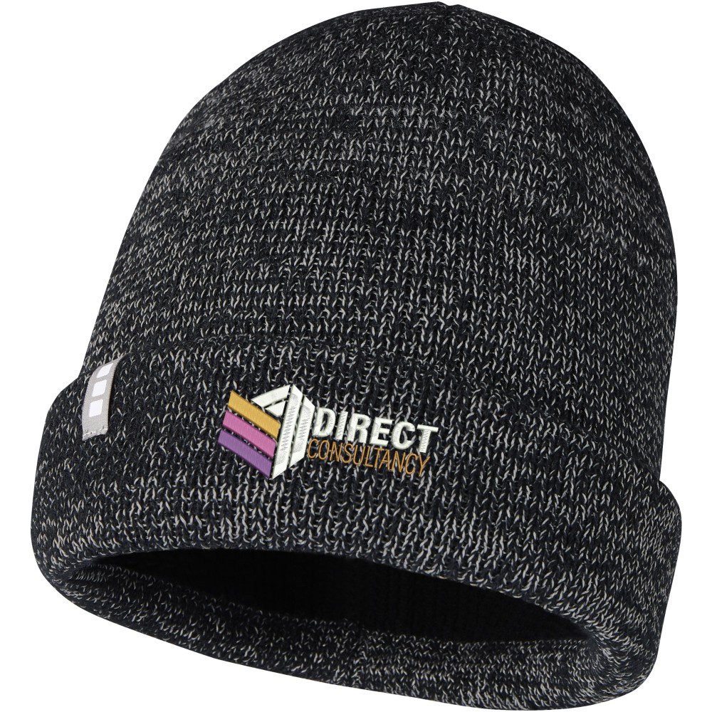 Egyrétegű sapka dupla hajtogatott széllel. Fényvisszaverő részletek. Márkázott címke. Emblémázás: Hímzés