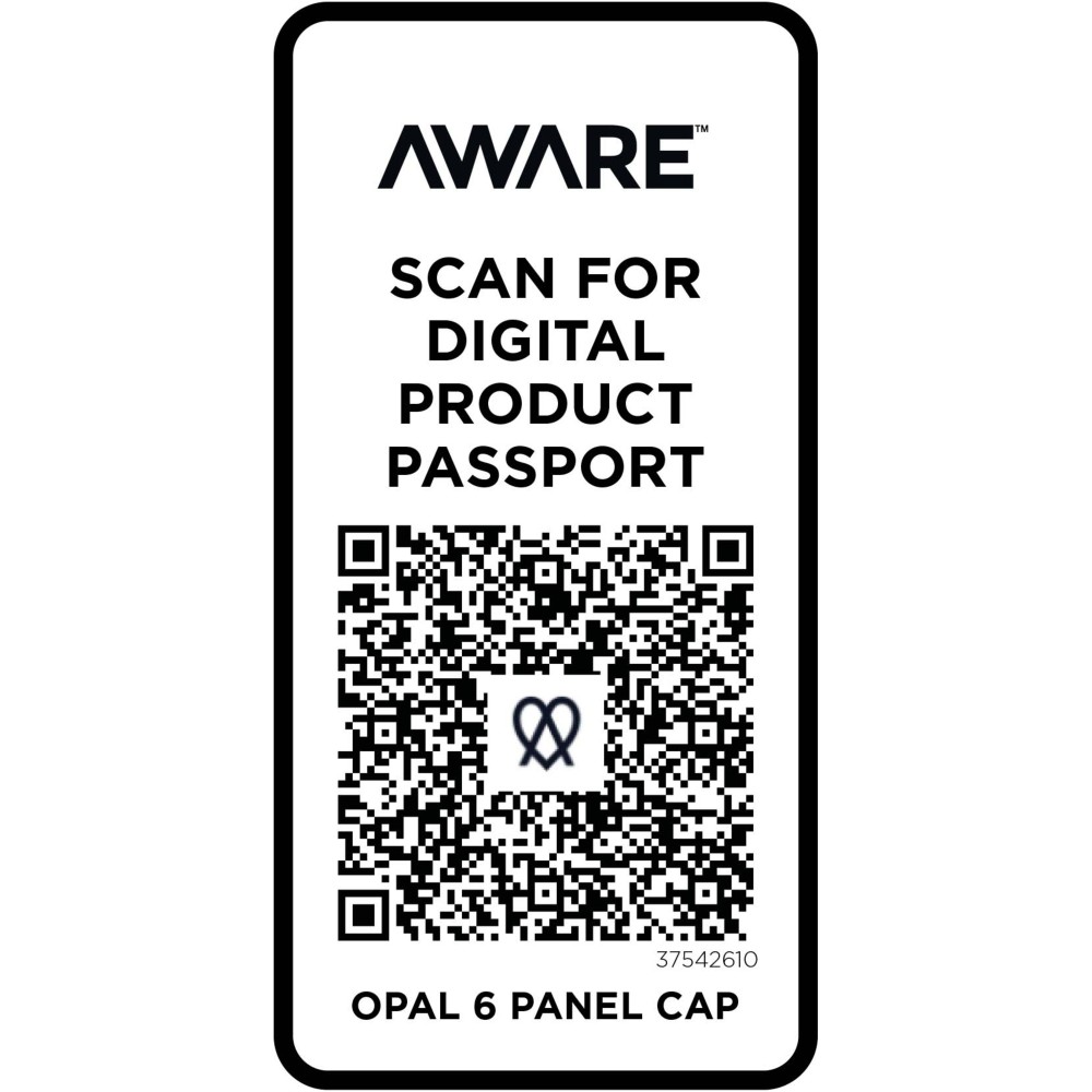 Az Opal 6 paneles sapka 70%-ban újrahasznosított pamutból és 30%-ban újrahasznosított poliészterből készült. Úgy tervezték, hogy 58 cm-es fejkörfogatnál kényelmesen illeszkedjen, a fémcsatos záródás pedig könnyű és biztonságos beállítást tesz lehetővé. A sapka Cyclo újrahasznosított szálakat tartalmaz, ahol előválogatott hulladékot használnak, amely meghatározza a fonal színét. Ezek a szálak nem csak a szűz erőforrások iránti igényt csökkentik, hanem a körkörös élet iránti elkötelezettséget is mutatják, megtestesítve a hulladékcsökkentés lényegét. Minden sapkához egy Aware nyomjelző is tartozik. Ez az innovatív funkció lehetővé teszi a felhasználók számára, hogy egy QR-kód segítségével nyomon követhessék a termék eredetét és útját, növelve az ellátási lánc átláthatóságát, és elősegítve a termék és a gyártási folyamat közötti szorosabb kapcsolatot. Emblémázás: Hímzés, Szitanyomás