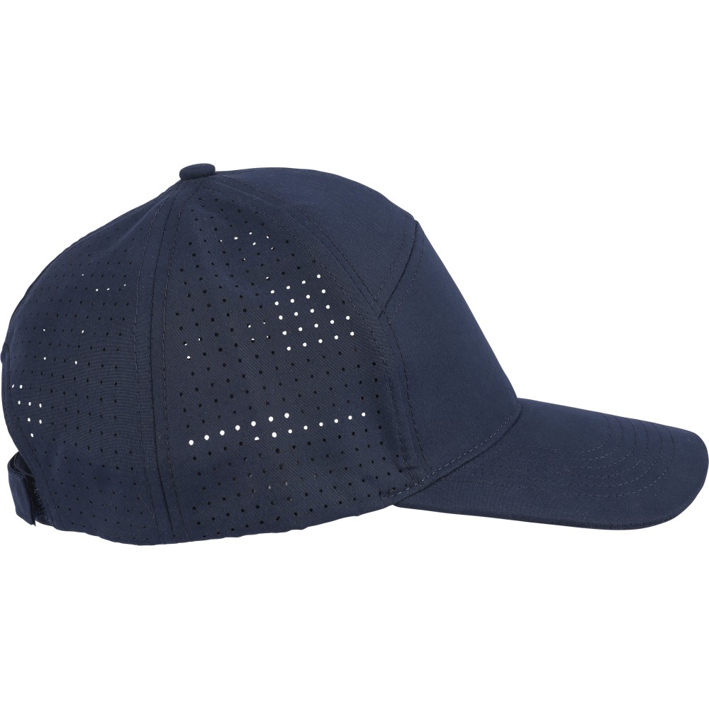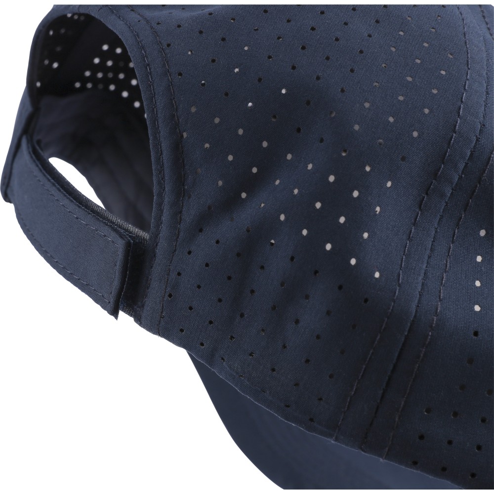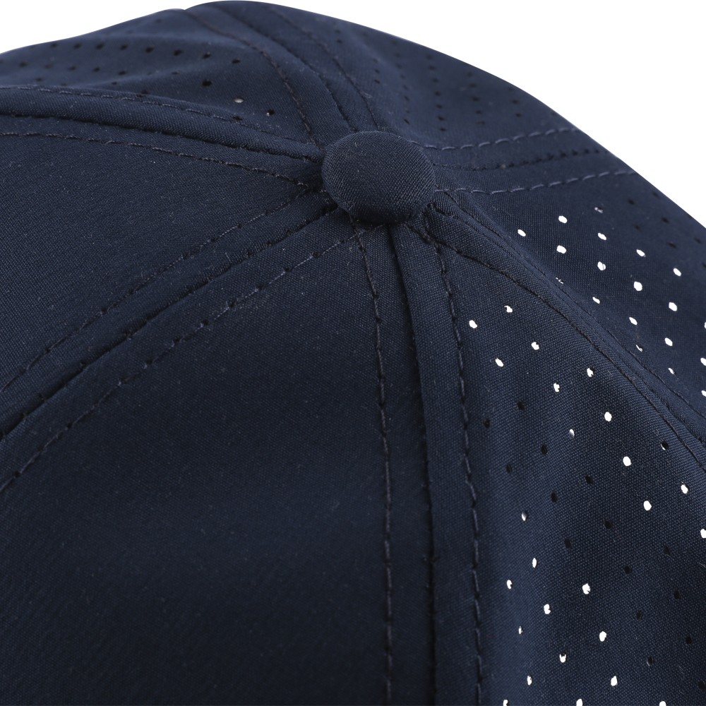 7 paneles poliészter baseballsapka lézervágott szellőzőnyílásokkal a hátsó paneleken. 7 cm-es ellenzővel, tépőzárral állítható pánttal, PU címke nélkül. Emblémázás: Hímzés, Szitanyomás