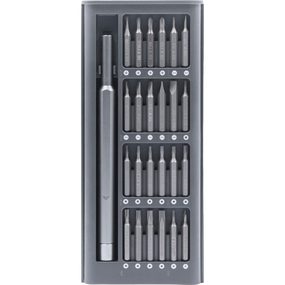 Az Everybit Lite multifunkciós szerszám tökéletesen alkalmas a legkülönbözőbb eszközök javítására, beleértve az okostelefonokat, MacBookokat, iPadeket, elektronikai eszközöket, órákat, fényképezőgépeket, laptopokat, szemüvegeket, áramköri lapokat, játékokat, PC-ket és játékkonzolokat. Tartós CRV acélból készült 24 mágneses precíziós bitet és a kényelmes fogást biztosító alumíniumötvözetből készült fogantyúja van. Emblémázás: Tamponnyomás