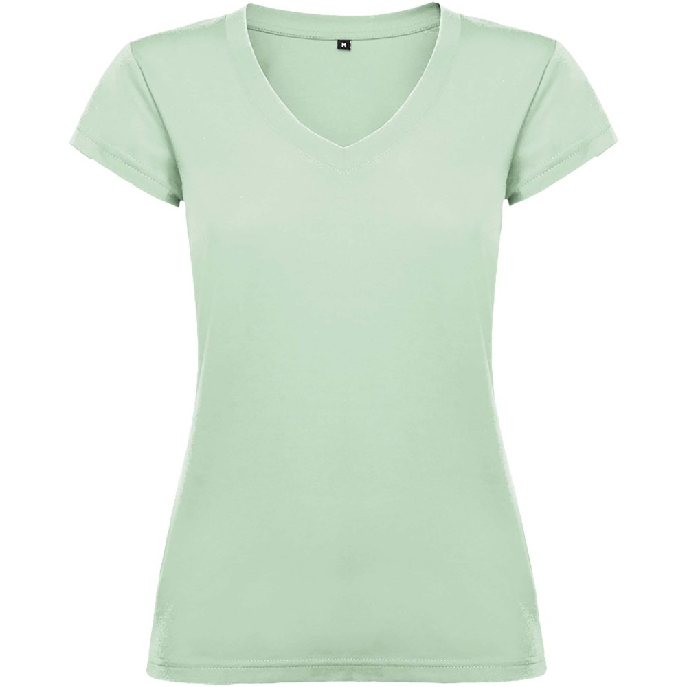 Roly Victoria női V-nyakú pamutpóló, Mist Green
