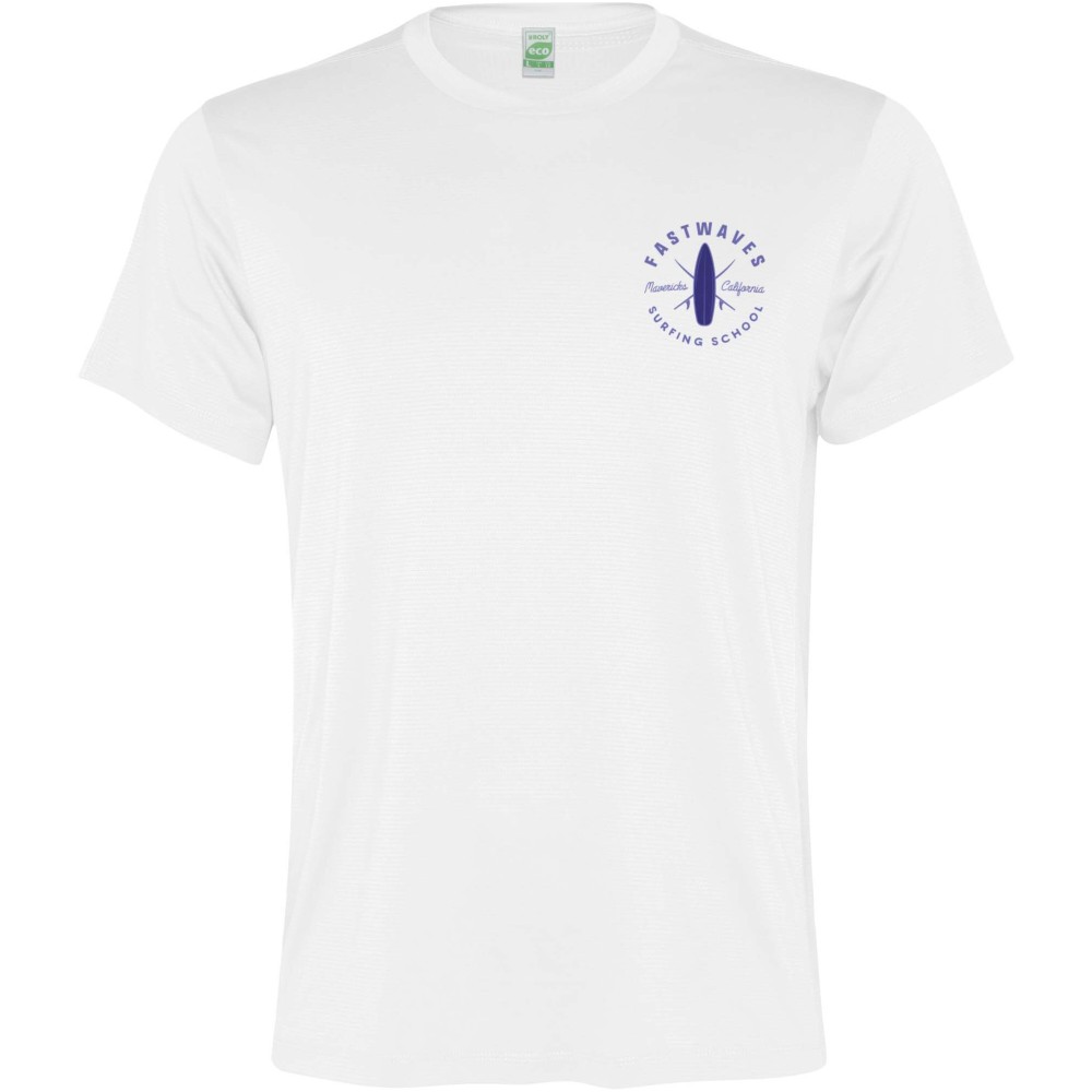 Könnyű, újrahasznosított poliészterből készült anyag. Keresztezett részletekkel és fedővarrásokkal ellátott nyakpasszé. Légáteresztő anyagból készült hátrész és ujjak. Légáteresztő és rugalmas anyagok kombinációja. Eltávolítható címke. Emblémázás: Szitanyomás