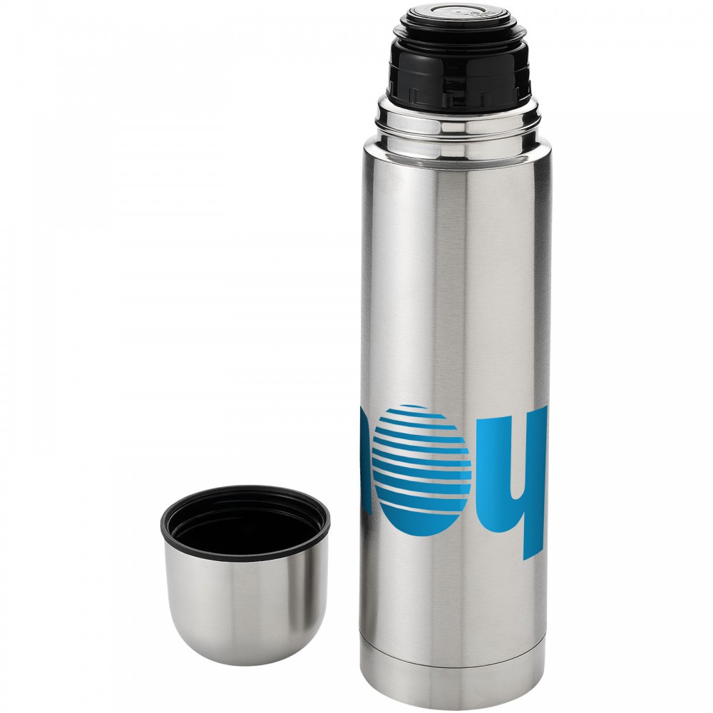 Duplafalú termosz pohár alakú tetővel. Egy kézzel használható, nyomógombos kiöntő, amely automatikusan bezár, ha a poharat rácsavarja a termosz tetejére. Kapacitás 750 ml. Emblémázás: Bögredekor, Gravírozás