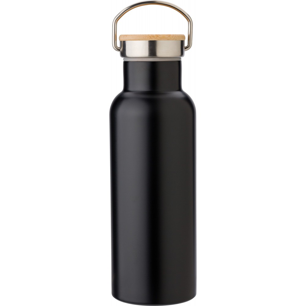 Duplafalú rozsdamentes acél palack, 500 ml, fekete
