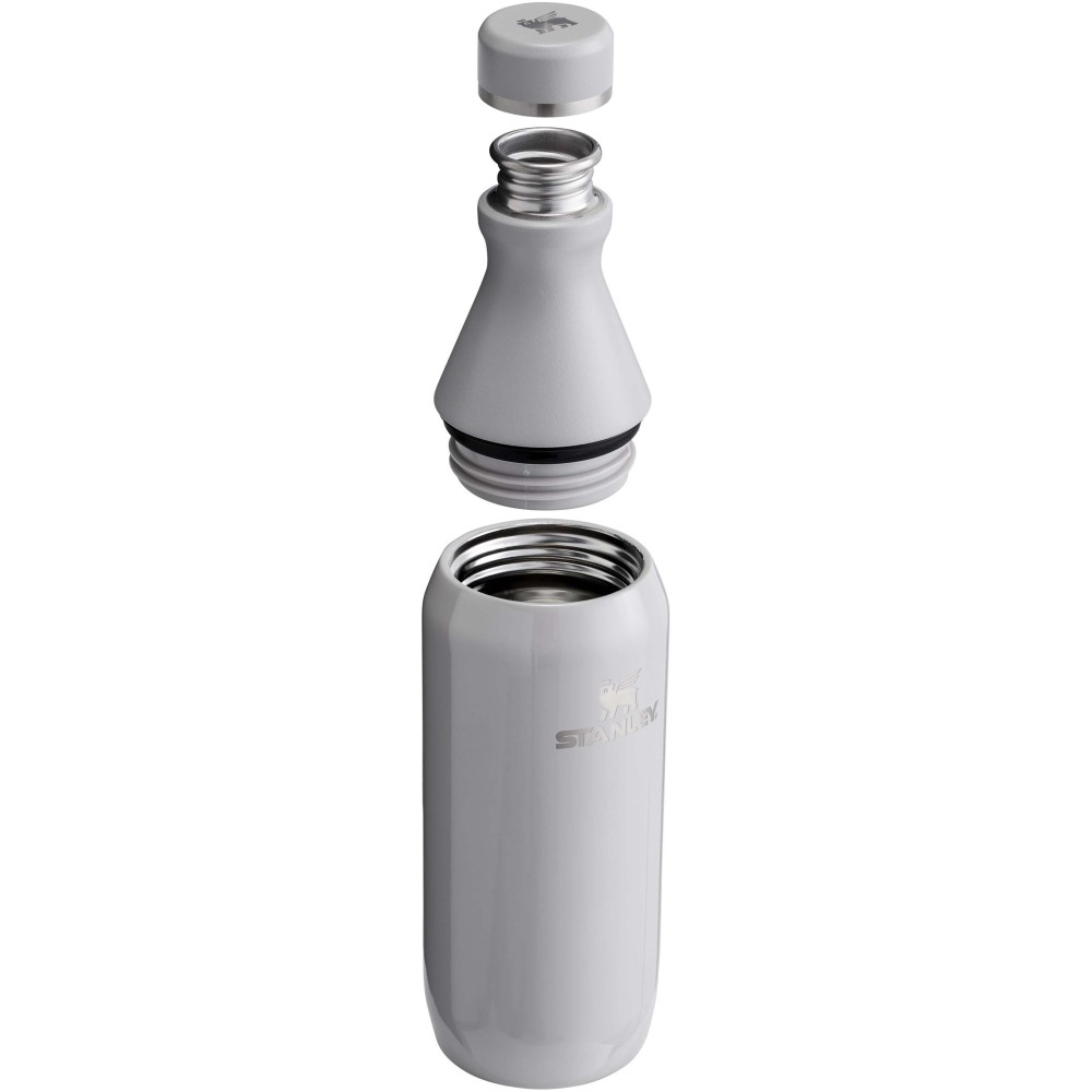 A Stanley 350 ml-es All Day Slim vizespalackot a napi hidratálásra tervezték, ötvözve a kényelmet és a teljesítményt. 90%-ban újrahasznosított rozsdamentes acélból készült, két részből álló nyílással rendelkezik: az egyik a könnyű iváshoz, a másik a jég hozzáadásához és a problémamentes tisztításhoz. A nyak egyfalú rozsdamentes acélból készült, műanyagmenetes gallérral és tömítéssel, amely megakadályozza a szivárgást. A test duplafalú vákuumszigeteléssel rendelkezik, biztosítva, hogy az italok órákon át a tökéletes hőmérsékleten maradjanak. Tartós és gondosan megtervezett, ideális palack a felfrissüléshez. Csak emblémázva rendelhető. Minimum rendelési mennyiség: 5 db.