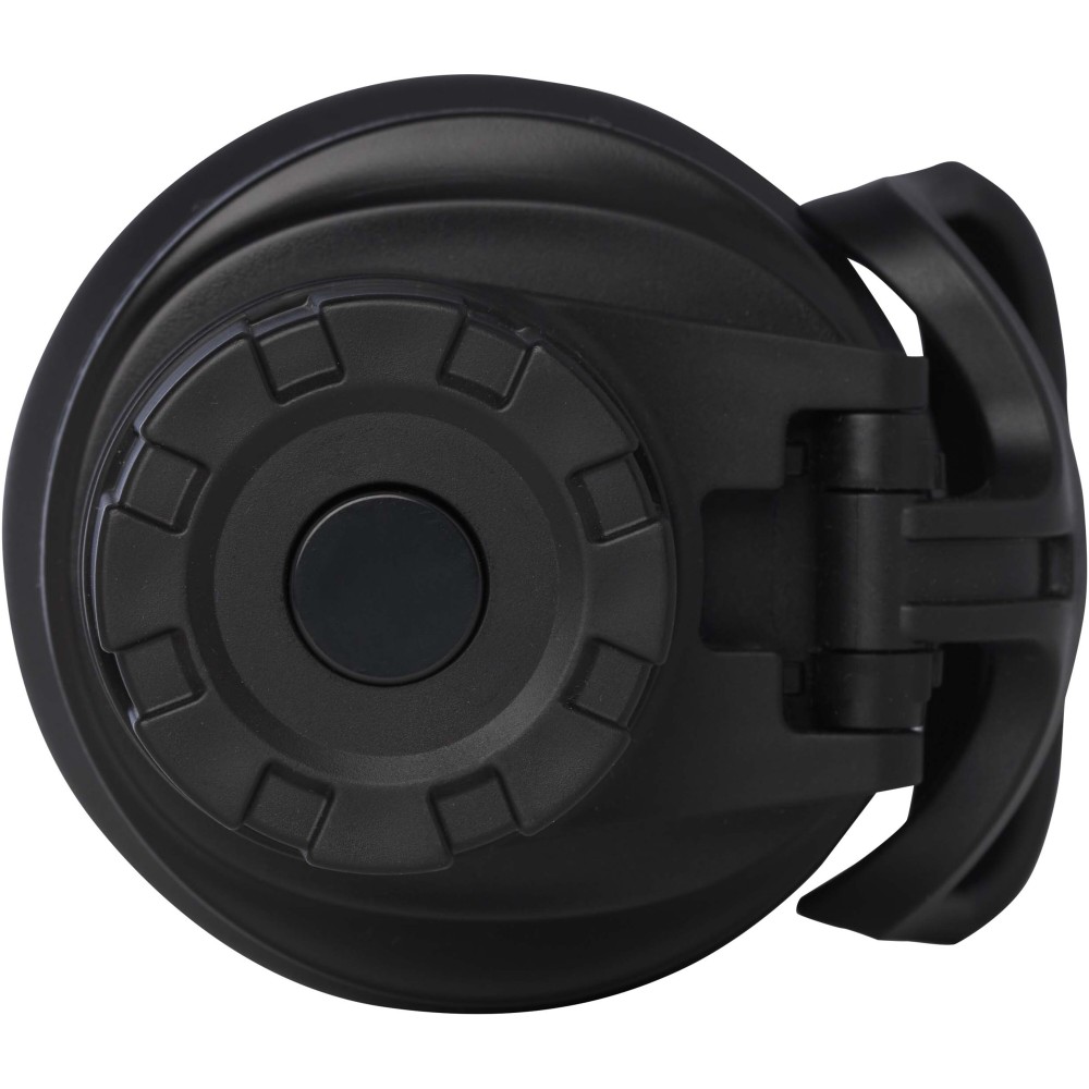 RCS tanúsítvánnyal rendelkező, rozsdamentes acélból készült, dupla falú, rézvákuum-szigetelésű kulacs csavaros, szivárgásmentes fedéllel. Széles nyílása megkönnyíti a töltést és a tisztítást, a fedélbe integrált hordozófül pedig praktikus szállítást biztosít. Szénsavas italokhoz is alkalmas. Külső felületén tartós porszórt bevonat található. Újrahasznosított karton díszdobozban kerül átadásra. Űrtartalom: 700 ml. Emblémázás: Bögredekor, Körszita