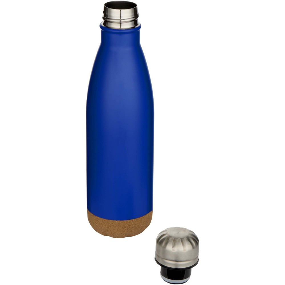 Vákuumszigetelt rozsdamentes acél kulacs parafa részletekkel az alján. Dupla falú szigetelése több órán át melegen vagy hidegen tartja az italokat. Újrahasznosított kartondobozos díszcsomagolásban kerül átadásra. Űrtartalom: 500 ml. Emblémázás: Gravírozás, Tamponnyomás