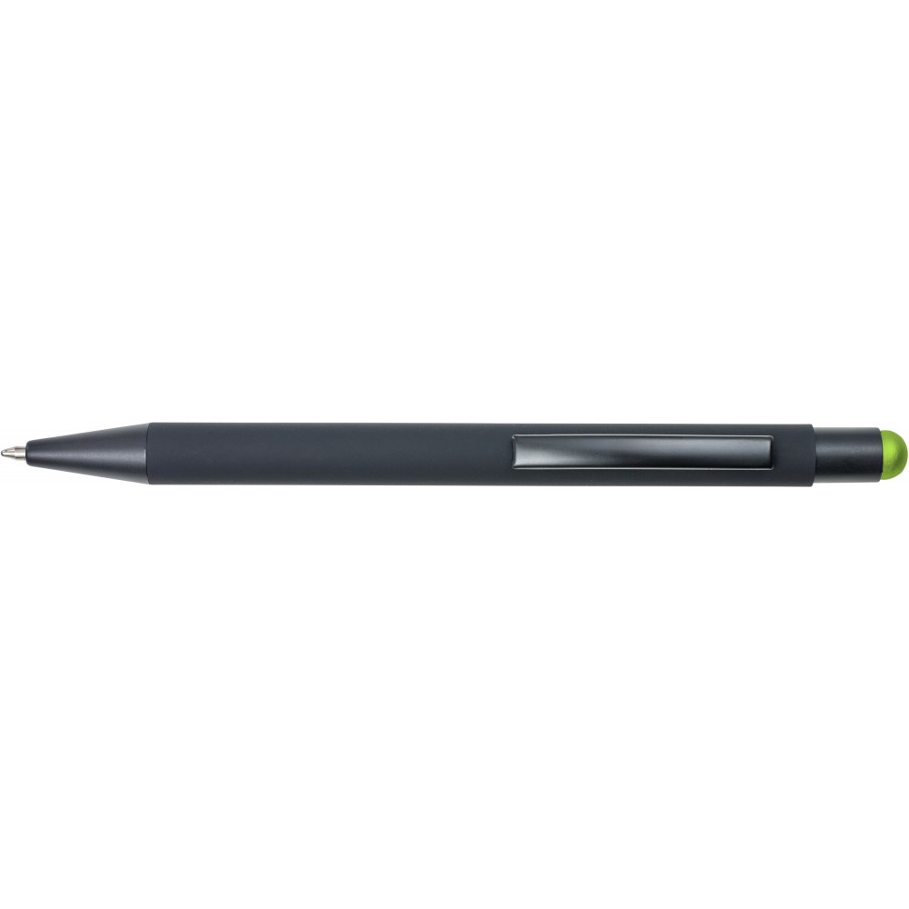 Golyóstoll színes érintővel, kék tollbetéttel és színes belső felülettel. ABS műanyag és alumínium. Emblémázás: UV nyomtatás