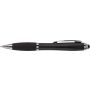 Érintős golyóstoll fekete tollbetéttel. A tetején lévő gumi segítségével érintőképernyős eszközökön használható. Emblémázás: Tamponnyomás, UV nyomtatás