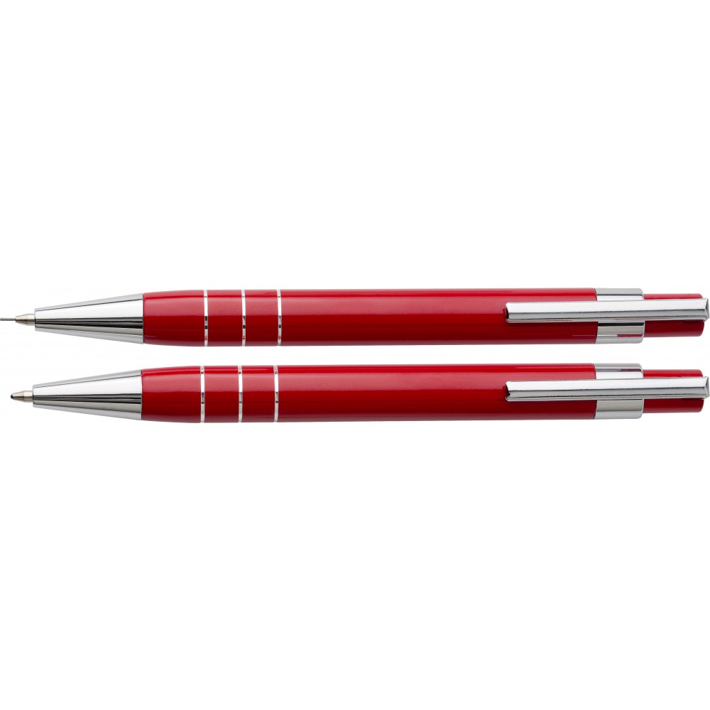Lakkozott tollkészlet tolltartóval, piros