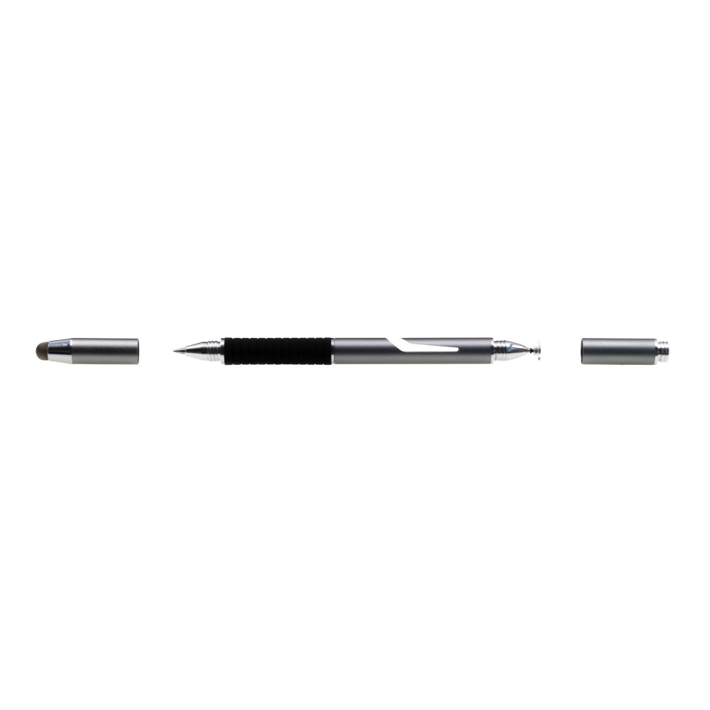 A Styllo 2 tökéletes választás azok számára, akik könnyedén szeretnének váltani a digitális és az analóg feladatok között. Egy egyszerű csavarással átalakul: papírhoz sima rollerball tollként, érintőképernyőhöz pedig kapacitív hálós vagy precíziós korongos tollként használható - ideális kreatív szakemberek számára. Masszív alumínium teste könnyű hordozhatóságot és elegáns, profi megjelenést biztosít. Minden érintőképernyős eszközzel kompatibilis, nincs szükség elemekre, így mindig használatra kész. Fekete papírdobozban érkezik. Emblémázás: Gravírozás
