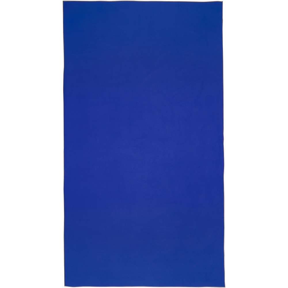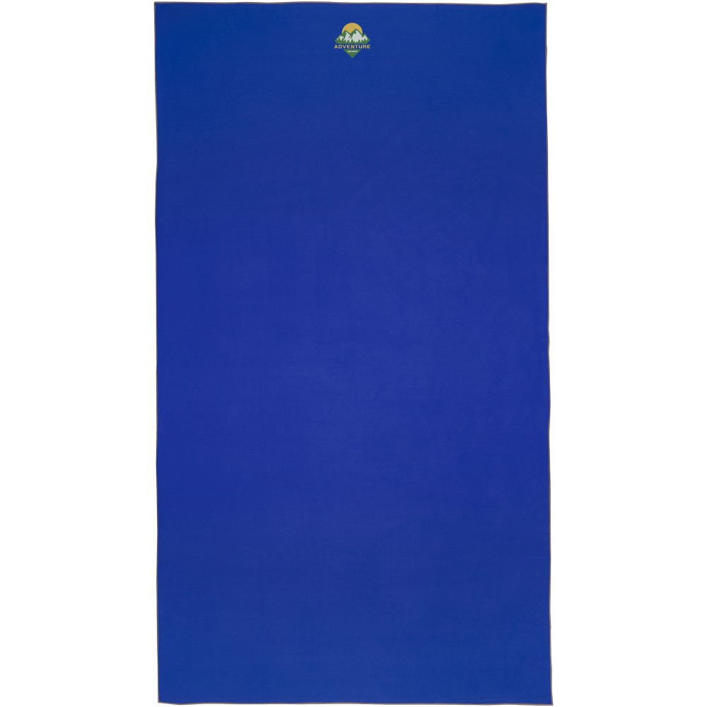 A Pieter sporttörülköző nagyon jó nedvszívó, könnyű, gyorsan szárad, az anyaga pedig tartós és rendkívül puha. Ha a törölközőt összehajtjuk és gumiszalaggal rögzítjük, kis méretűre csomagolható, így alkalmas arra, hogy magunkkal vigyük az edzőterembe, uszodába, vagy ha hátizsákos túrára, esetleg kempingezésre megyünk. A törülköző 100 x 180 cm méretű, 90% GRS újrahasznosított poliészterből és 10% nejlonból készült, és 40 °C-on mosható mosógépben. Újrahasznosított PET műanyagból készült tároló tasakkal (25 x 8,5 cm) szállítjuk. Emblémázás: Hímzés, Szitanyomás