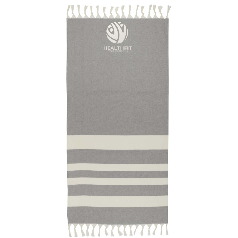 Az Anders hammam törölköző luxus kényelmet nyújt nagy méreteivel (147 x 75,5 cm), biztosítva a megfelelő takarást, akár a medence mellett pihensz, akár a tengerparton töltöd a napot. A törölköző mindkét végén elegáns bojtokkal van díszítve, anyaga 30% pamut, 35% GRS tanúsítvánnyal rendelkező újrahasznosított pamut és 35% GRS tanúsítvánnyal rendelkező újrahasznosított poliészter. 180 g/m2. Emblémázás: Hímzés, Szitanyomás