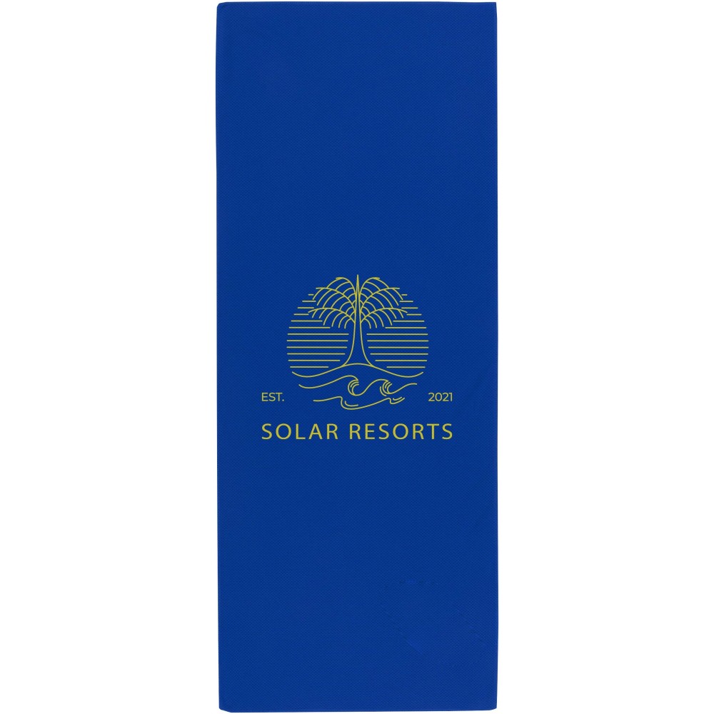 Az Althea sporttörölköző 140 g/m2 poliészterből készült, gyorsan száradó és nedvszívó felületet biztosít, ami elengedhetetlen az izzadság letörléséhez intenzív edzések vagy szabadtéri tevékenységek során. Az elő és a hátoldal színe eltérő. A hátoldal sötétkék. A törölköző mérete 30 x 80 cm. Emblémázás: Hímzés, Szitanyomás