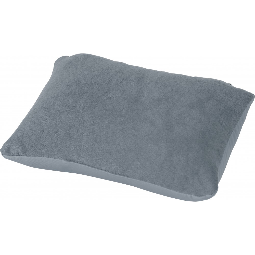 2in1 utazópárna polifoam gyöngyökkel töltve. A formája nyaktámasztó körpárnából négyszögletes hagyományos formára alakítható a cipzár segítségével. Puha, bársonyos tapintású anyag. Emblémázás: Szitanyomás