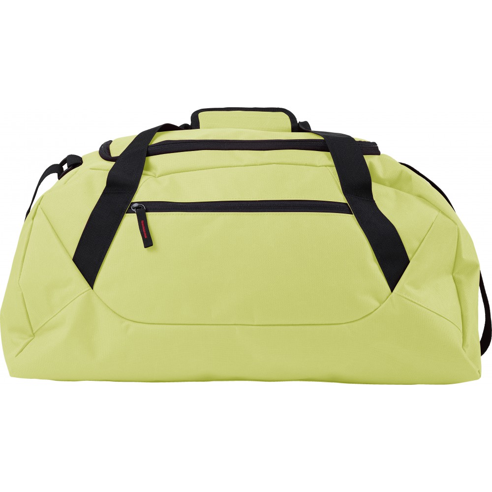 Utazó- sporttáska cipzáros főrésszel és elsőzsebbel, állítható vállpánttal. 600D poliészter. Emblémázás: Szitanyomás