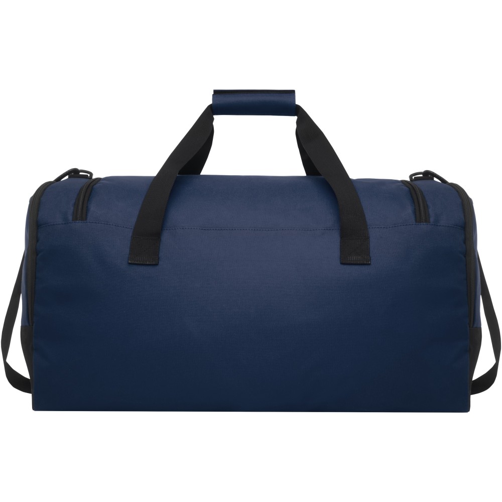 Erős táska 100% -ban újrahasznosított műanyagból, amellyel hozzájárul a műanyag hulladék csökkentéséhez. Nagyméretű fő rekesz és első cipzáras zseb, párnázott vállpánt és párnázott fogantyú. Körülbelül 27 műanyagpalack újrahasznosításával készült. 600D poliészter. Emblémázás: Szitanyomás