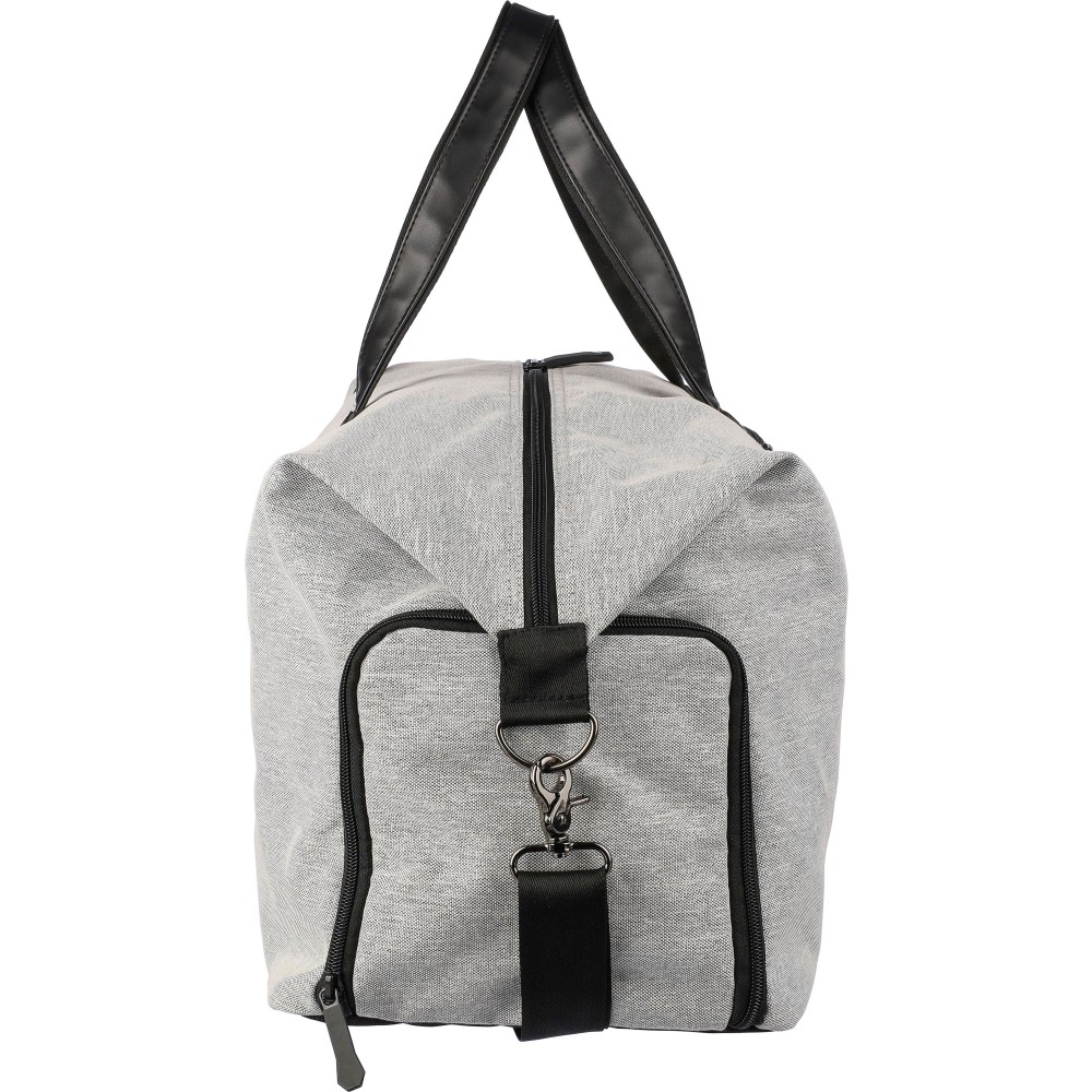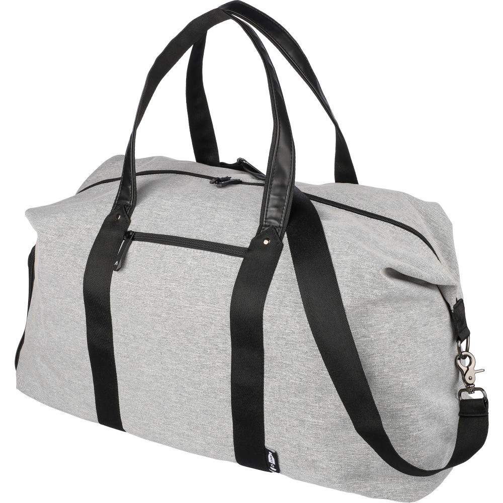 Táska műbőr részletekkel. Belső része 4 mm-es habbal és 1 mm-es PE merevítővel rendelkezik. Tartalmaz egy kis cipzáras rekeszt elöl, egy nagy cipzáras rekeszt és egy oldalsó cipőtartó zsebet. Állítható vállpánttal és két nagy fogantyúval ellátva. Az elülső részen rPET anyagra utaló címke található. Anyaga: 600D újrahasznosított poliészter. Emblémázás: Hímzés