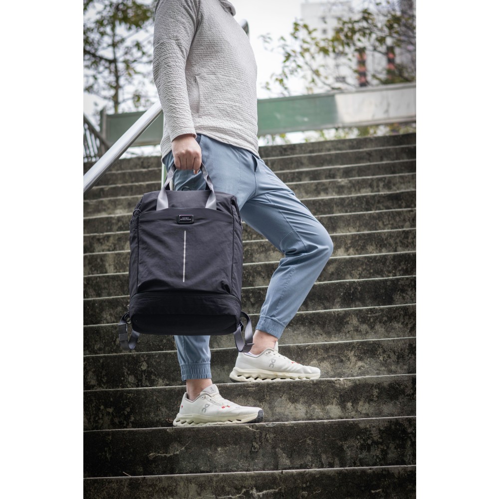 Az Urban Vibe kollekcióba tartozó Hauler egy fenntarthatóan készült, hétvégi kiruccanásra alkalmas táska. Újrahasznosított nejlon, ultrakönnyű és tartós kialakítású, súlya: 650 g. 23 literes űrtartalommal rendelkezik, párnázott laptoprekesszel, cipőtartó rekesszel, két oldalzsebbel és négy belső elválasztóval. Párnázott hátoldallal, bőröndre rögzíthető pánttal, fényvisszaverő részletekkel és vízlepergető kivitelben készül. Mindennapi használatra, utazáshoz vagy sporttevékenységhez alkalmas. Emblémázás: Szitanyomás