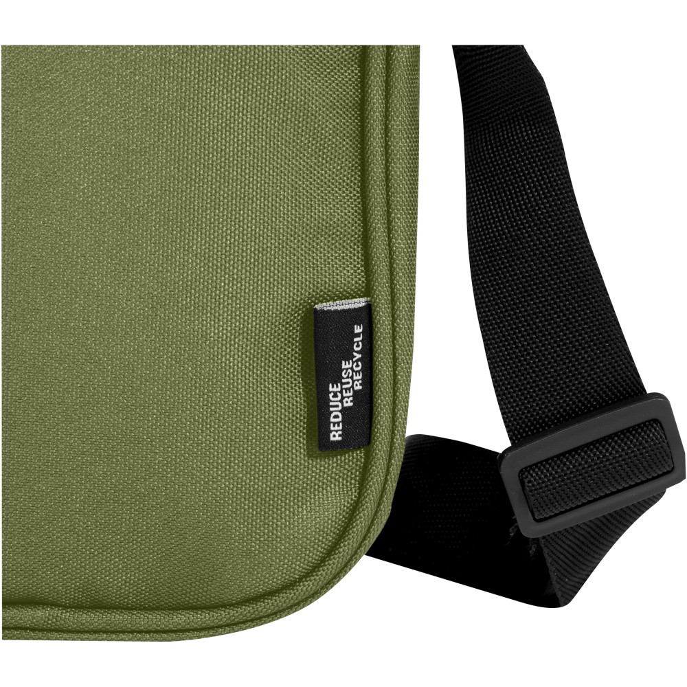 Praktikus és vízlepergető válltáska GRS újrahasznosított poliészterből. Egy cipzáras rekesszel és egy belső zsebbel rendelkezik, hogy a mindennapi eszközeid biztonságban legyenek. Egy cipzáras elülső zsebbel a kulcsok és az értékes kiegészítők számára, valamint egy nyitott zsebbel a hátoldalon a gyors tárolás érdekében. Az állítható, kiváló minőségű vállpántoknak köszönhetően a Byron válltáska tökéletes a mindennapi használatra, minimális ökológiai lábnyom mellett. PVC-mentes. Emblémázás: Szitanyomás