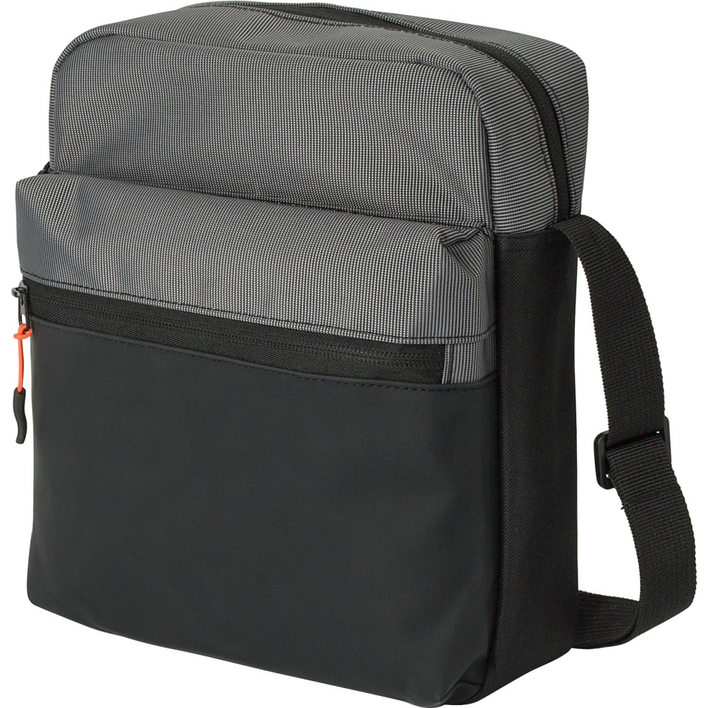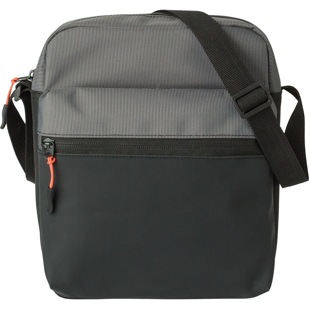 500D kéttónusú válltáska. Állítható vállpánt színes kiegészítőkkel. Kis cipzáras elülső zseb. Nagy felső cipzáras rekesz, hátul kis belső cipzáras zsebbel. Emblémázás: Szitanyomás