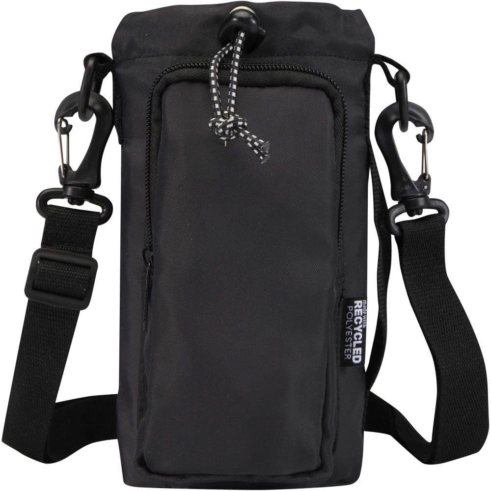 A Trip Aware® újrahasznosított utazó kulacstartó táska praktikus és könnyű megoldás a folyadékpótlás biztosítására útközben. Tartós 290D twill poliészterből készült, kötött hátoldallal és RPET 210D/PU béléssel, így egyszerre nyújt tartósságot és átgondolt kialakítást. Fő rekesze húzózsinórral záródik, és alkalmas mind nagyobb, füllel ellátott, mind kisebb palackok tárolására, a hátsó nyílás pedig könnyű hozzáférést biztosít. Elülső zsebében elférnek az alapvető holmik, például a telefon, ezen belül belső nyitott zseb és szalag a kulcsok rögzítéséhez. Az állítható pánt és az oldalsó fogantyú rugalmas hordozási lehetőségeket kínál. Minden táska Aware® nyomkövetővel érkezik, amely QR-kód segítségével lehetővé teszi a termék eredetének és útjának nyomon követését, növelve az ellátási lánc átláthatóságát és a kapcsolatot a termék gyártási folyamatával. Űrtartalom: 2 liter. Emblémázás: Szitanyomás