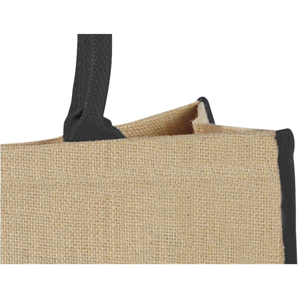 The Large juta bevásárlótáska tépőzáras kialakítással. A lehajtható fülek magassága 17 cm. Megjegyzés: finom grafikát vagy szöveget nem, csak vastag, erős nyomatott lehet az anyagon alkalmazni. Juta. Emblémázás: Szitanyomás