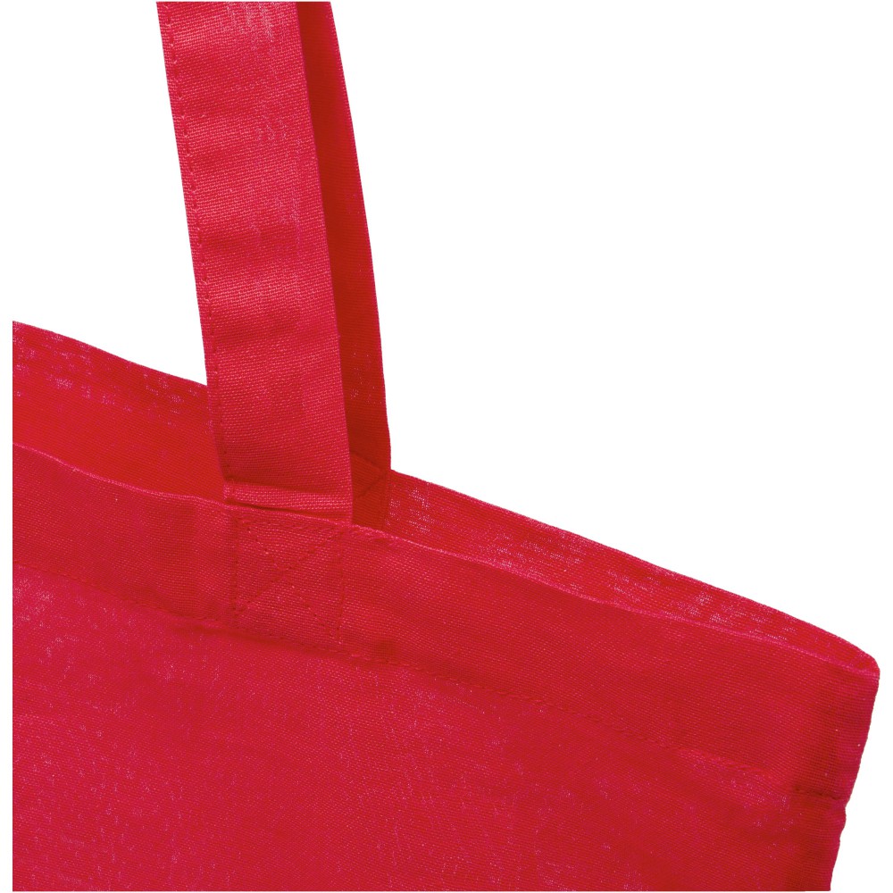 A Carolina táska könnyű és pénztárcabarát, így kiválóan alkalmas reklámhordozó rendezvényeken, konferenciákon vagy kiállításokon. A nagy fő rekesz elegendő helyet biztosít a könnyű tárgyak tárolására, a 30 cm-es vállpántok pedig megkönnyítik a táska szállítását. Fülek magassága 30 cm. 100 g/m2 pamut. Emblémázás: Szitanyomás