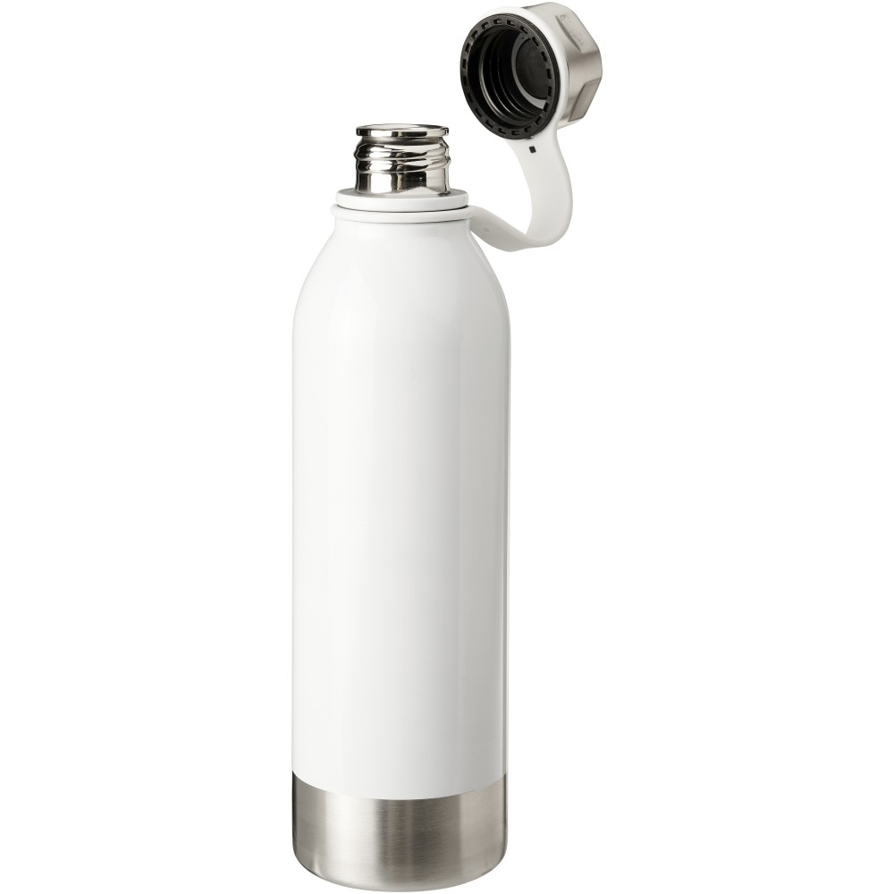A Perth 740 ml-es rozsdamentes acél sportpalack nem csak a szemet gyönyörködteti minden asztalon, hanem ideális az erdei séta során is. A csavarozható teteje és a kényelmes szilikon fogantyúval ellátott rozsdamentes acél fedél megkönnyíti a palack hordozhatóságát. Ráadásul a kupak soha nem vész el. A fehér és ezüst színkombináció stílusos megjelenést kölcsönöz a palacknak. Szivárgásmentes. Szénsavas italokkal nem használható. Mosogatógépben nem mosható és mikrohullámú sütőben történő melegítésre nem alkalmas. Emblémázás: Gravírozás, Tamponnyomás